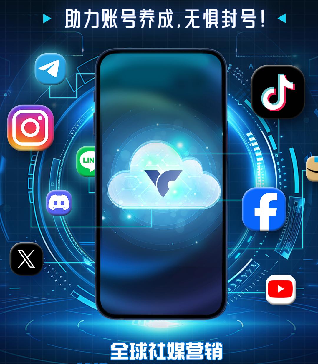 全球社媒营销 就选云主机Cloud 无需购买多台真实手机 一人即可操作N台云手机 N个社媒账号为您引流